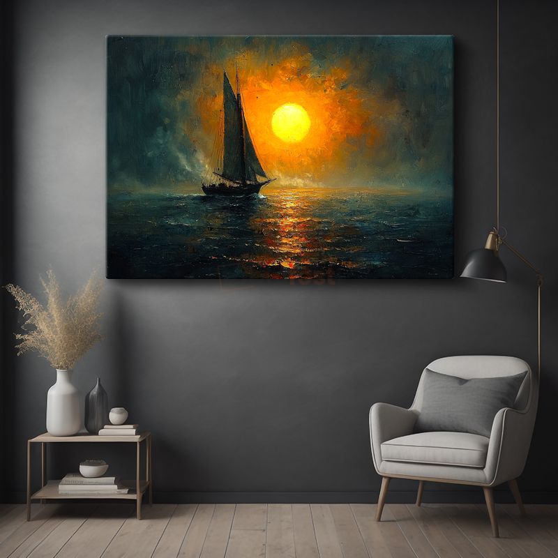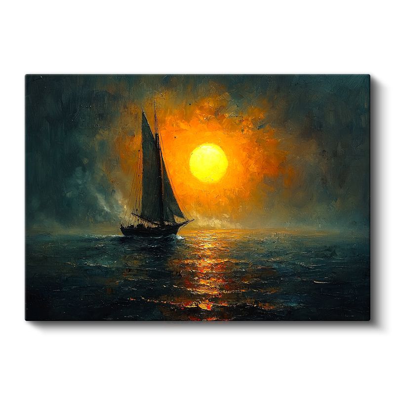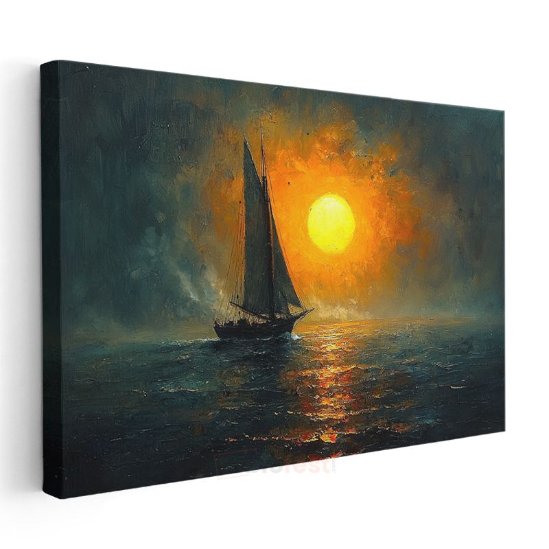 Gün Batımında Yelkenli - Altın Işıkta Deniz Yolculuğu Kanvas Tablo