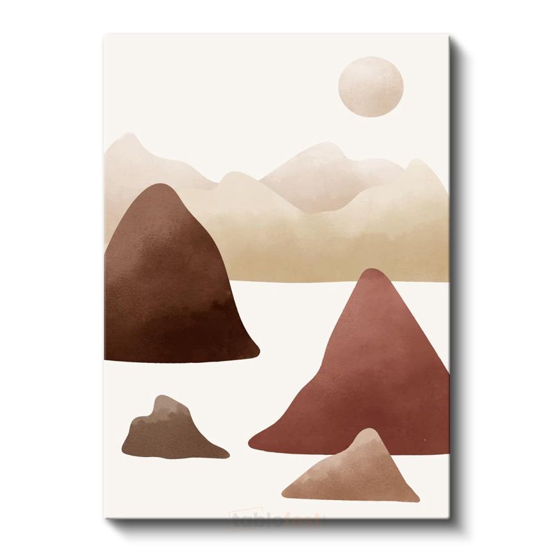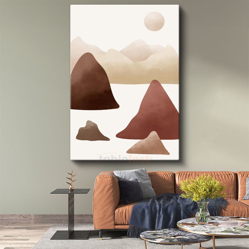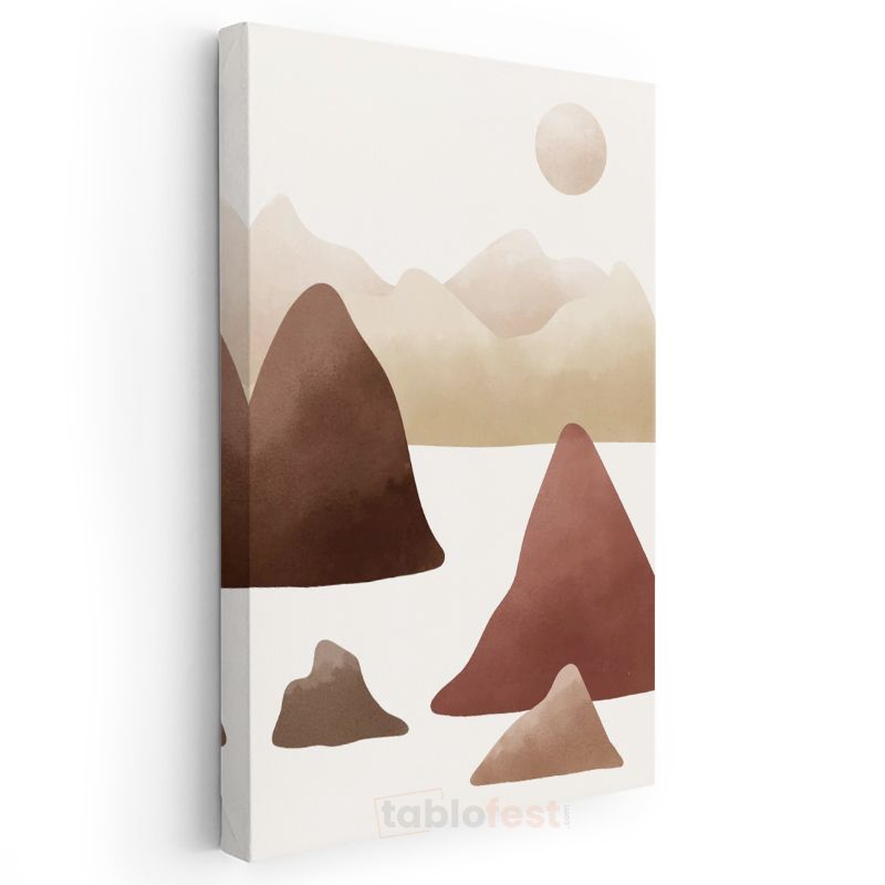 Güneş Doğuşu - Toprak Rengi Tepeler Soyut Manzara Kanvas Tablo