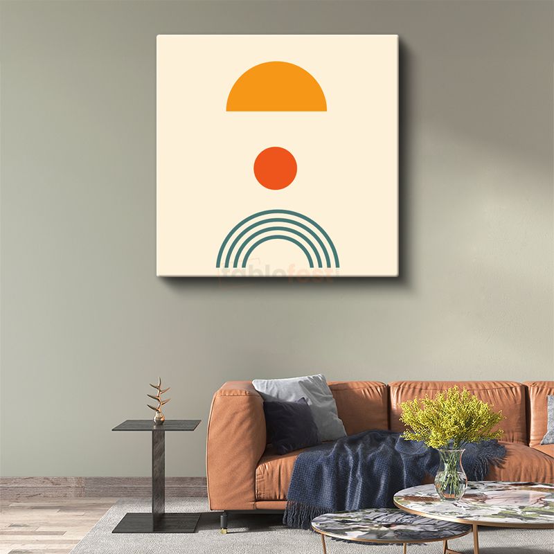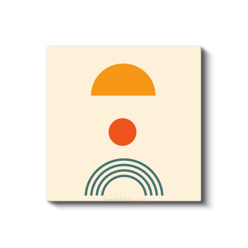 Güneş Döngüsü - Turuncu Yarım Daire ve Yeşil Gökkuşağı Kanvas Tablo