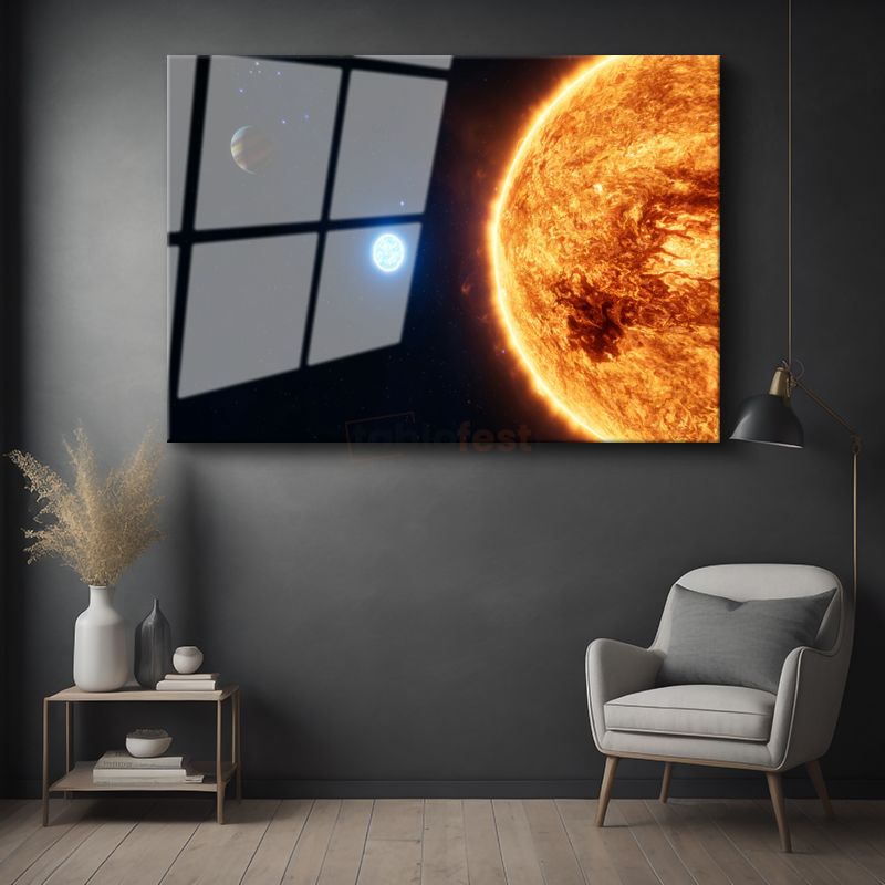 Güneş Sistemi - Parlak Yıldızlar Arasında Gezegenlerin Dansı Cam Tablo