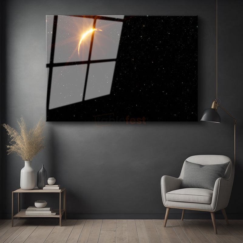Güneş Tutulması - Yıldızlarla Çevrili Kozmik Olay Cam Tablo