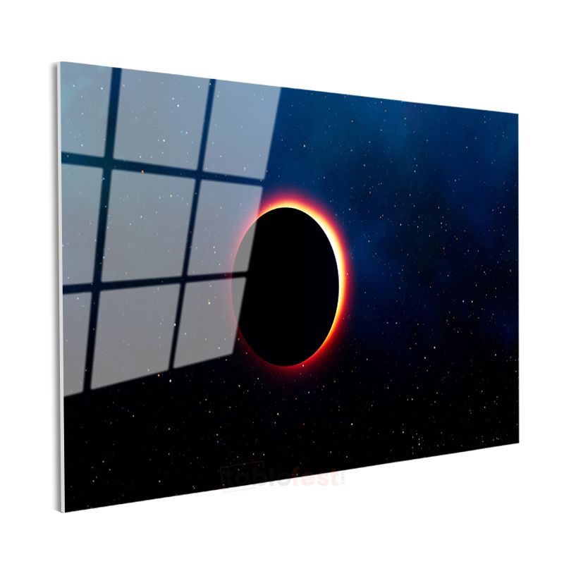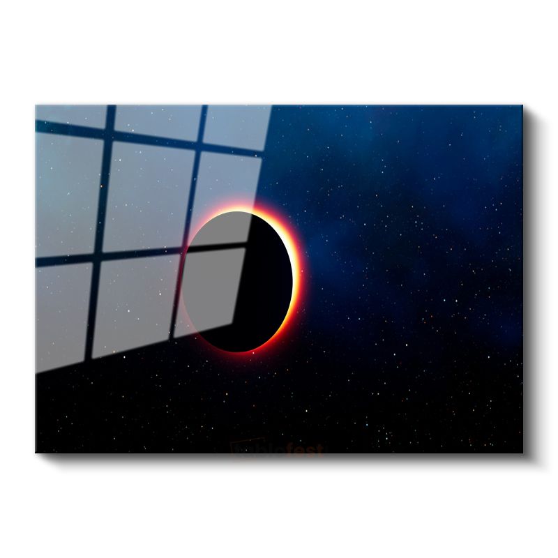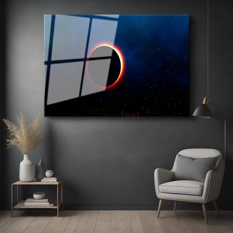 Güneş Tutulması - Yıldızlı Gökyüzünde Kozmik Dans Cam Tablo