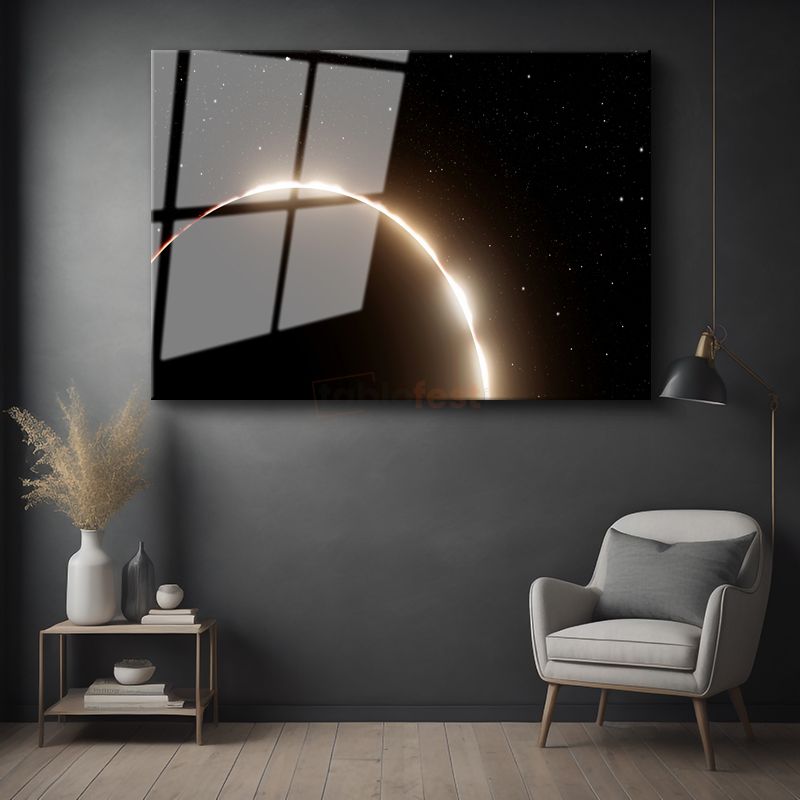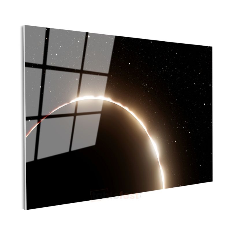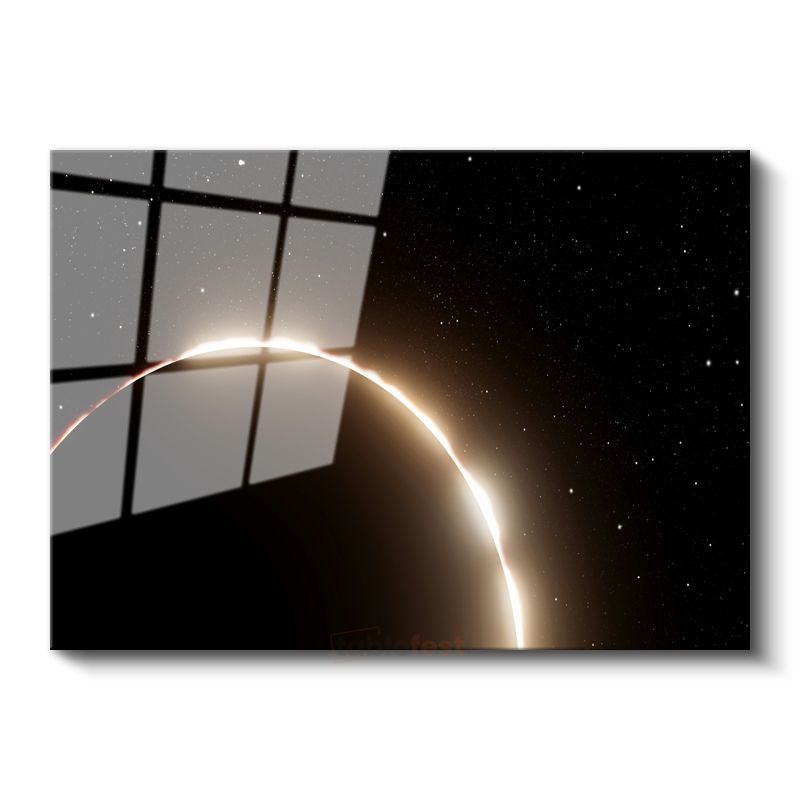 Güneş Tutulması - Yıldızlı Gökyüzünde Kozmik Olay Cam Tablo