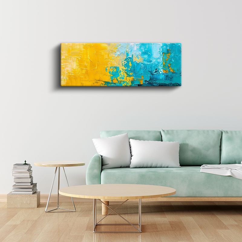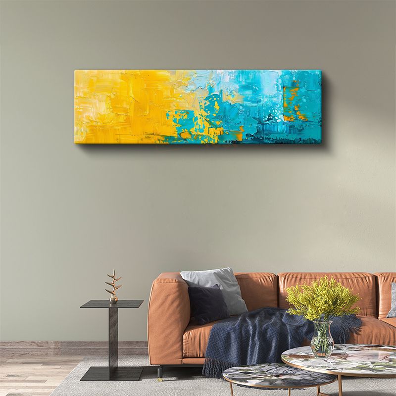 Güneş ve Deniz - Sarı Mavi Dokulu Soyut Kanvas Tablo