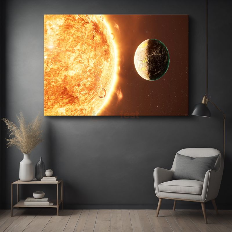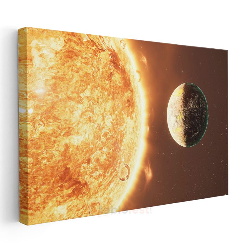 Güneş ve Gezegen - Kozmik Işık Dansı Kanvas Tablo