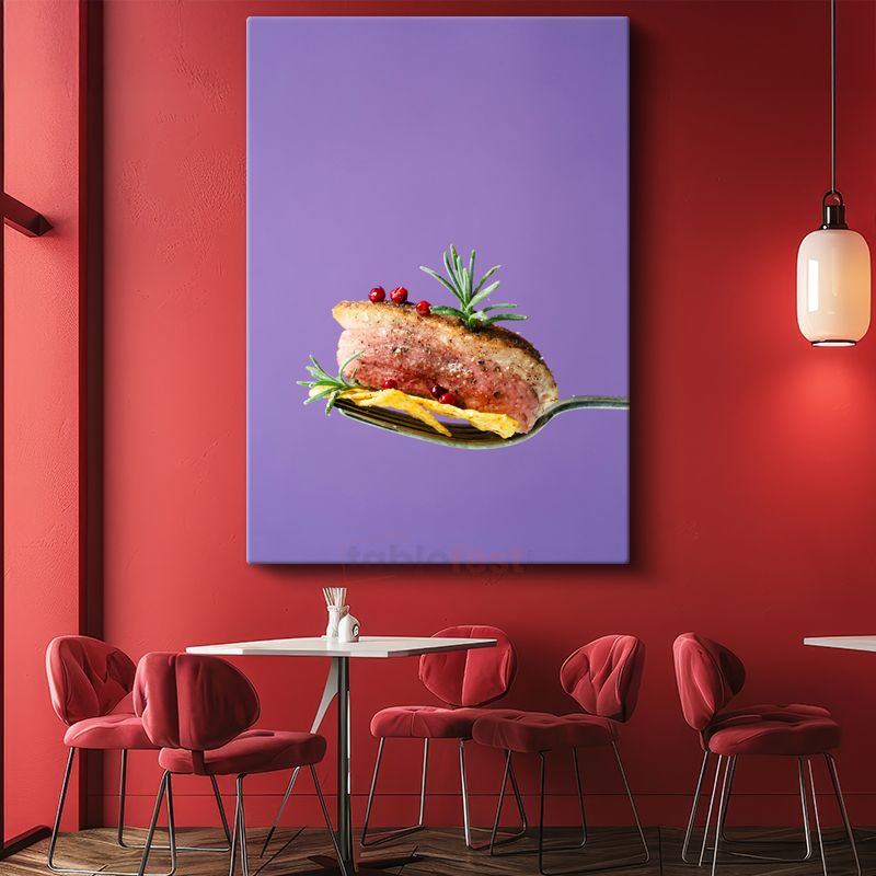 Gurme Lokma - Kaşıkta Sunulan Et Lezzeti Kanvas Tablo