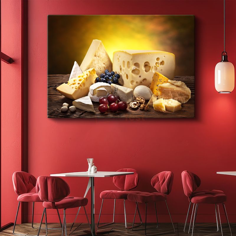 Gurme Peynirler - Üzüm ve Kuruyemiş Eşliğinde Kanvas Tablo