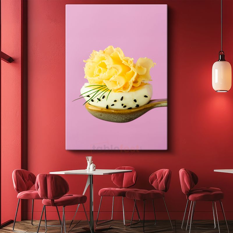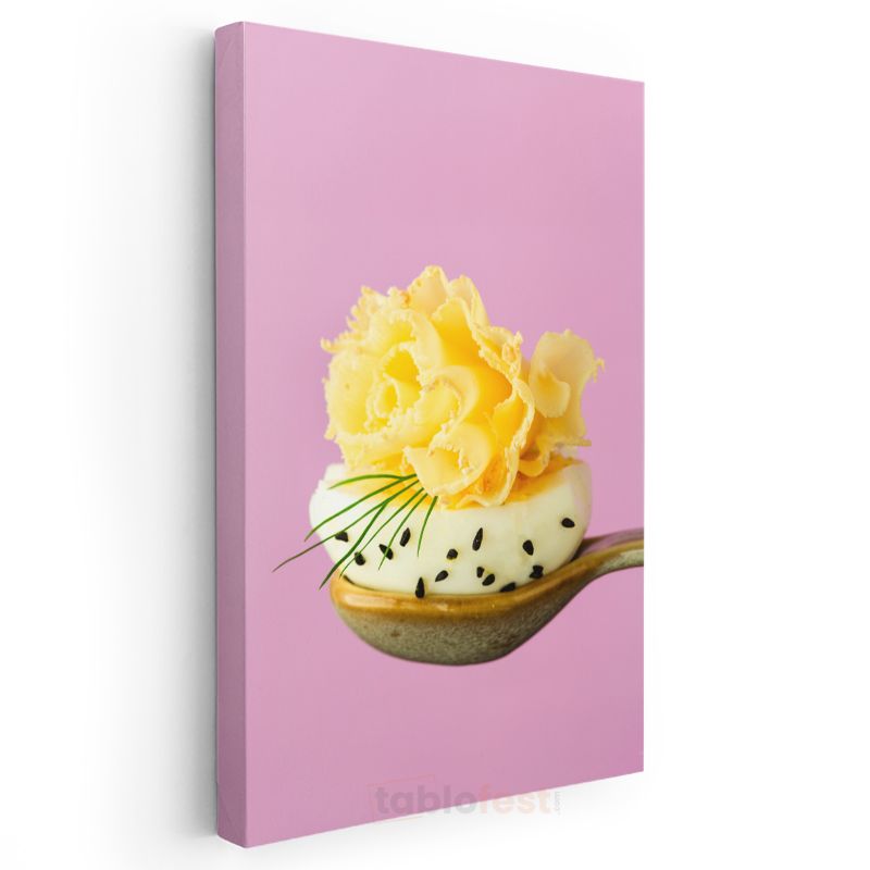 Gurme Sunum - Kaşıkta Peynir ve Taze Otlar Kanvas Tablo