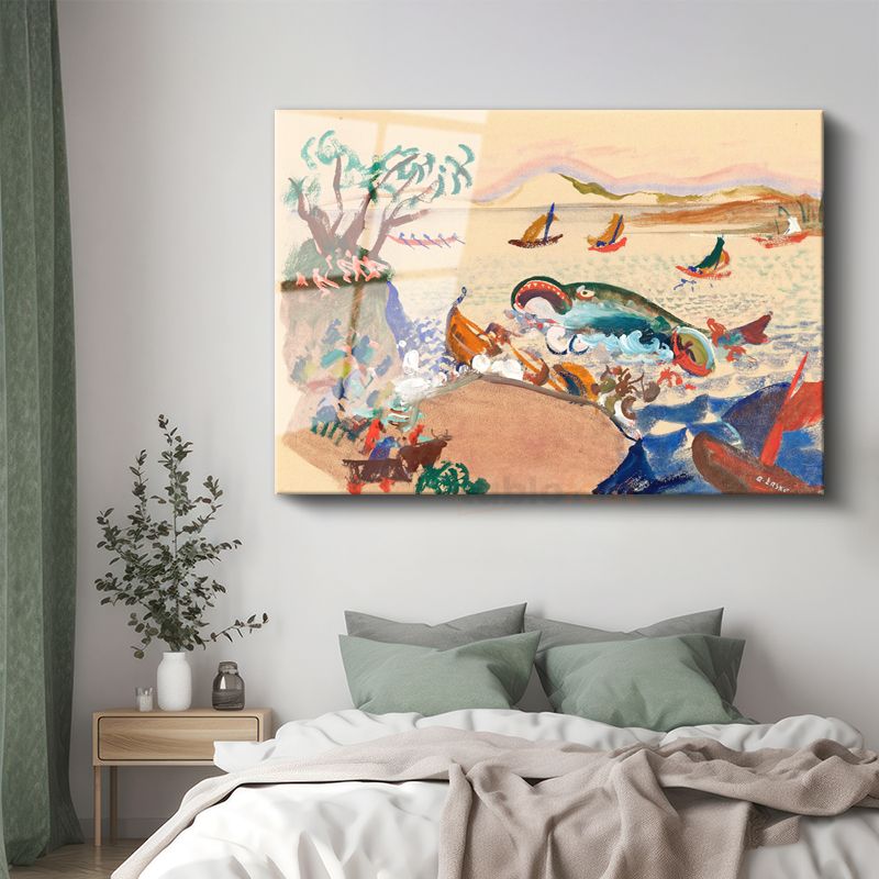 Gustave Loiseau - Renkli Sahil Manzarası Cam Tablo