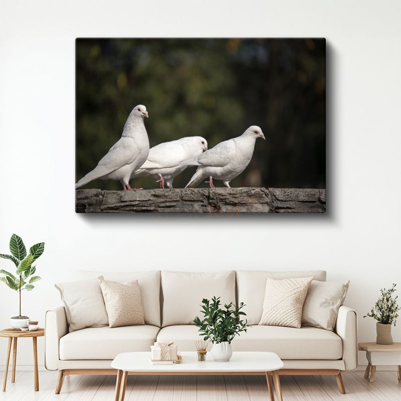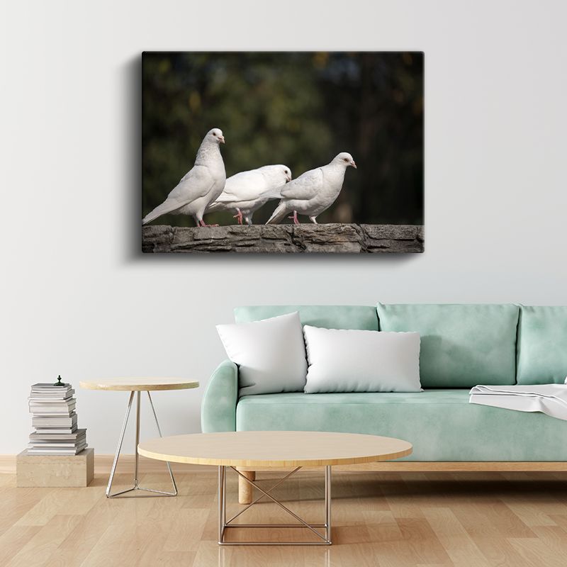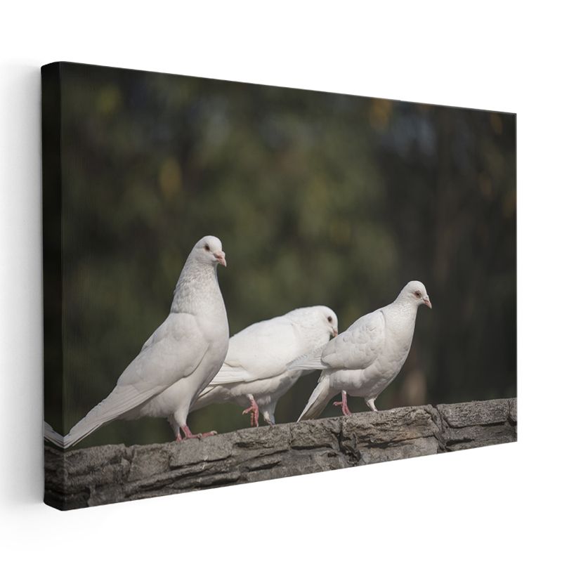 Güvercin Üçlüsü - Beyaz Kuşlar Topluluğu Kanvas Tablo