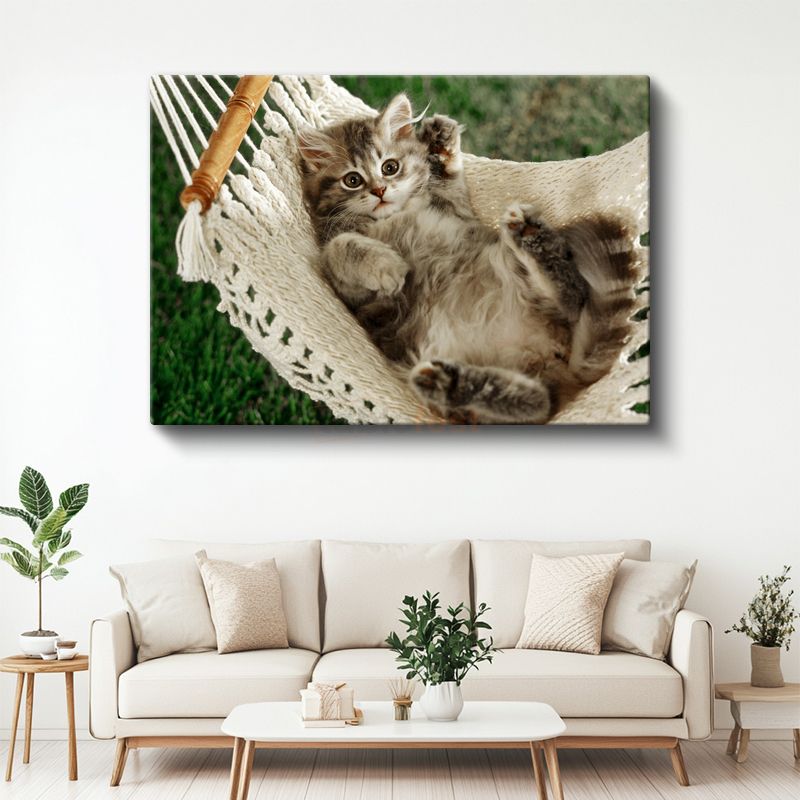 Hamaktaki Yavru - Sevimli Tüylü Kedi Yavrusu Kanvas Tablo