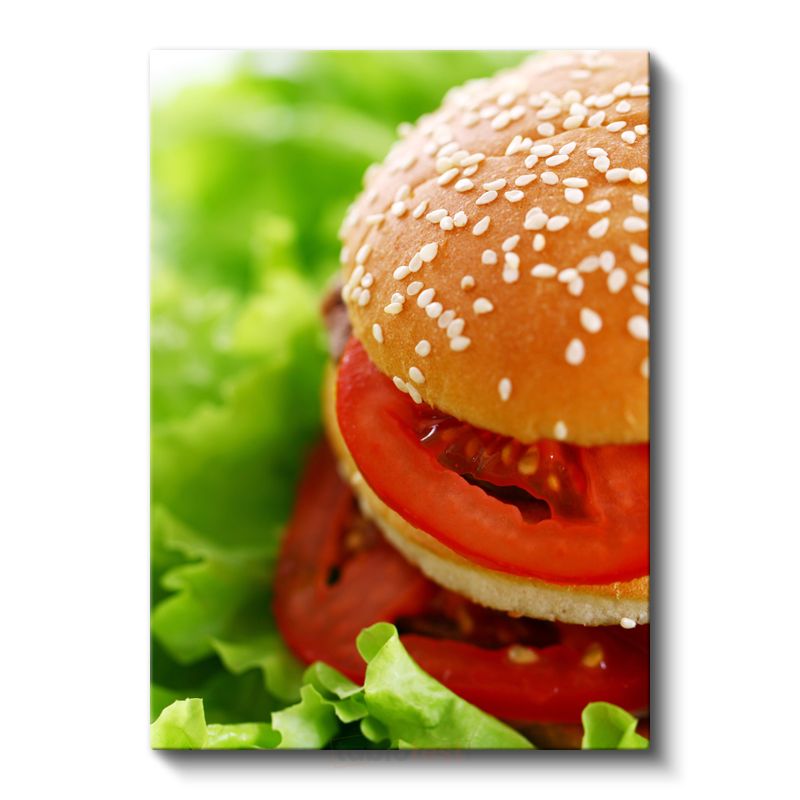 Hamburger - Taze Domates ve Yeşillikli Lezzet Kanvas Tablo