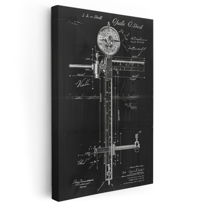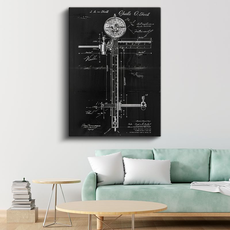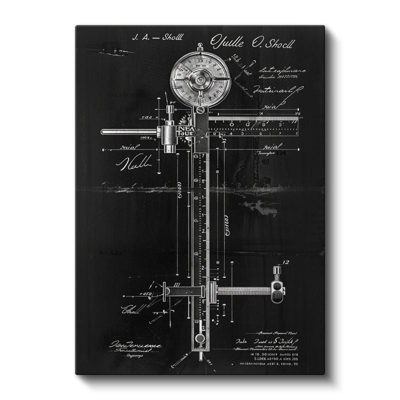 Hassas Ölçüm Aleti - Endüstriyel Dönem Teknik Çizim Kanvas Tablo