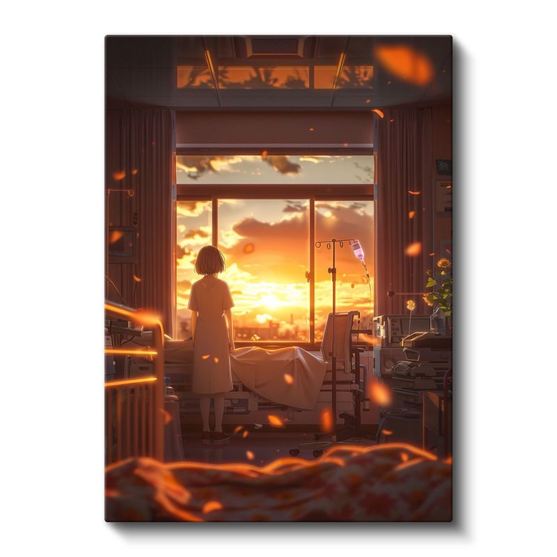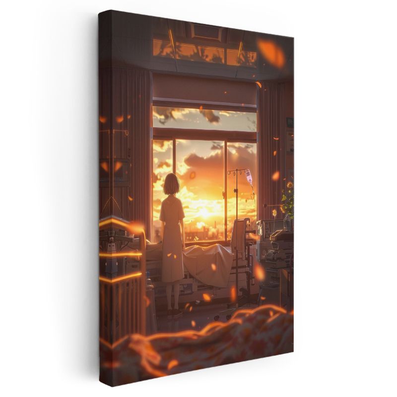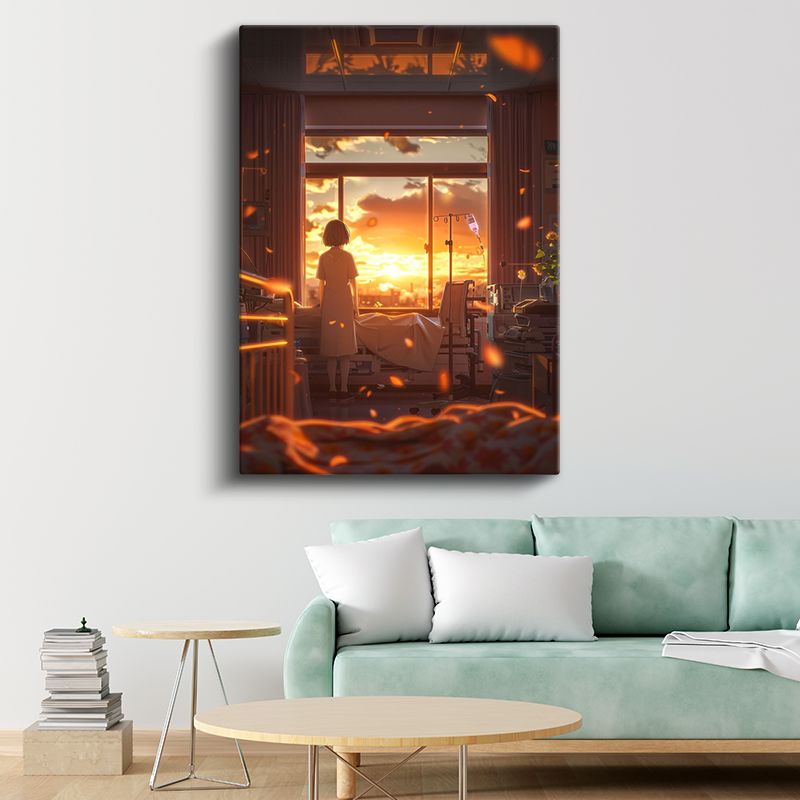 Hastane Odası - Altın Gün Batımı Anime Kanvas Tablo