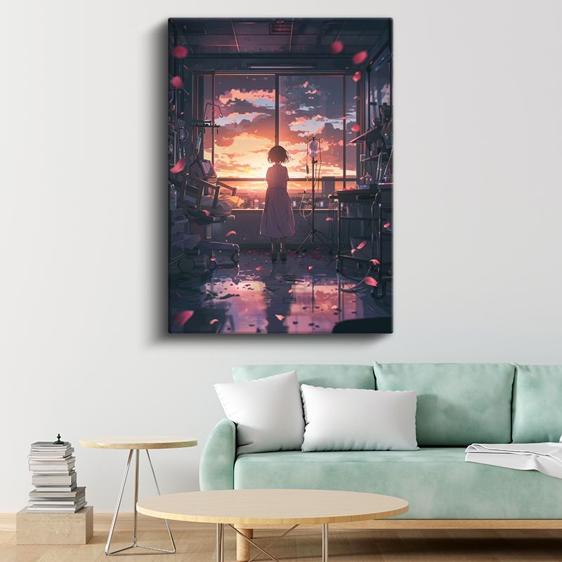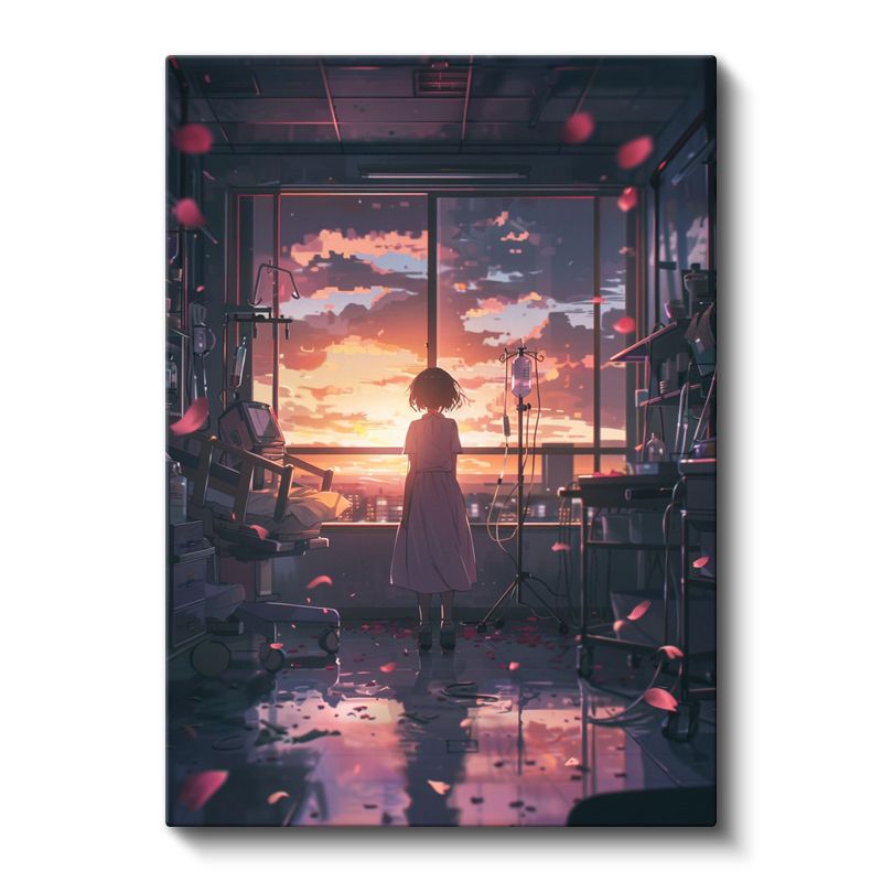 Hastane Odası - Gün Batımı Manzarası Anime Kanvas Tablo