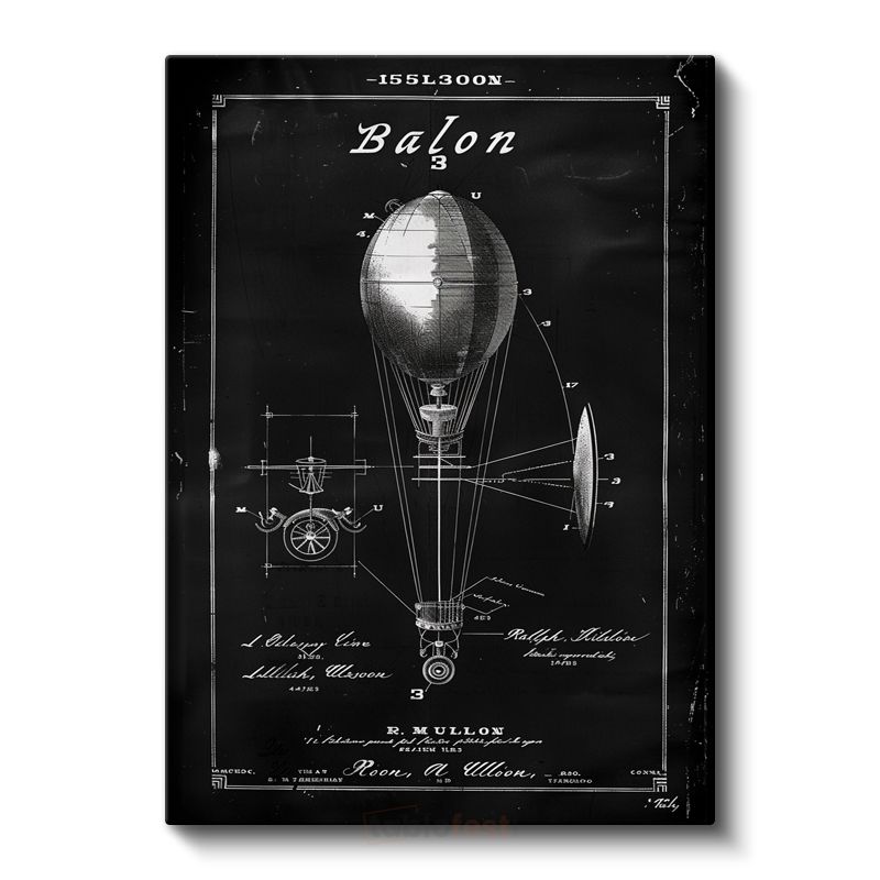 Hava Balonu - Vintage Uçuş Aracı Patent Çizimi Kanvas Tablo