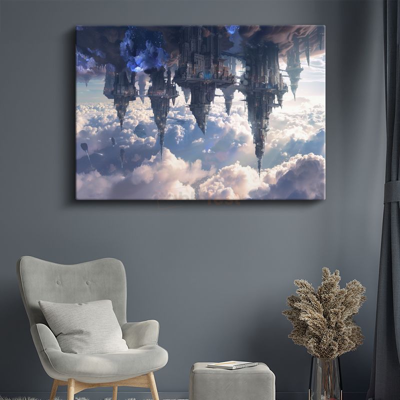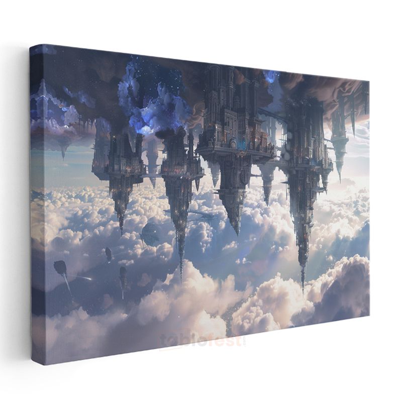 Havada Asılı Şehir - Bulutların Üzerinde Tersine Dünya Kanvas Tablo