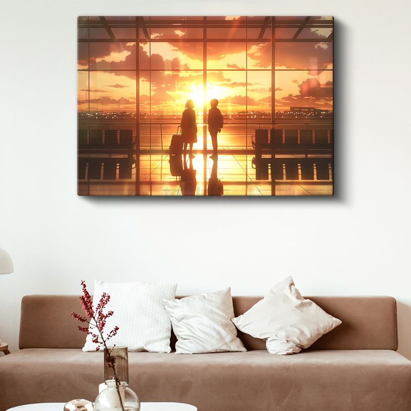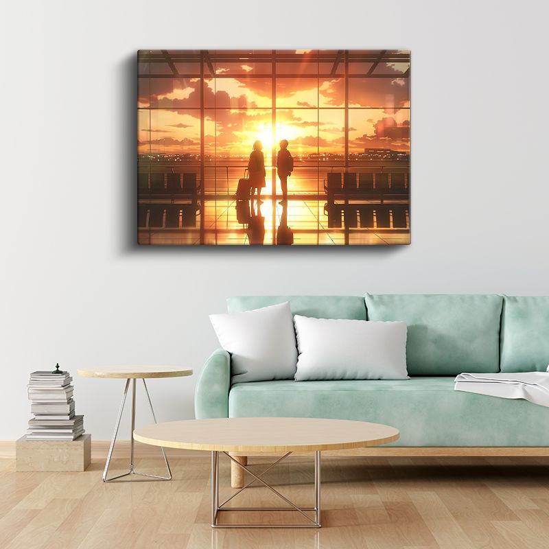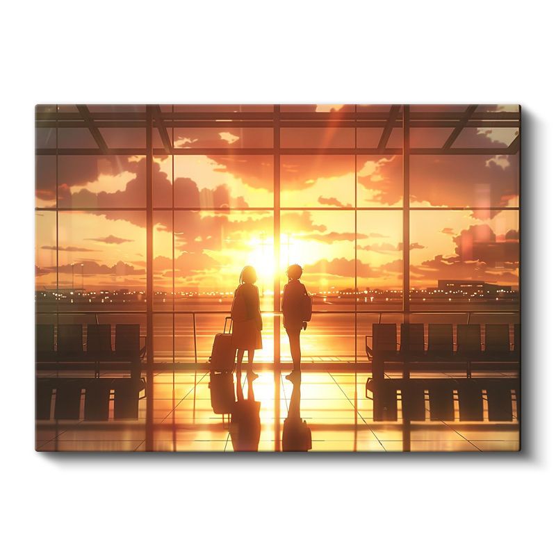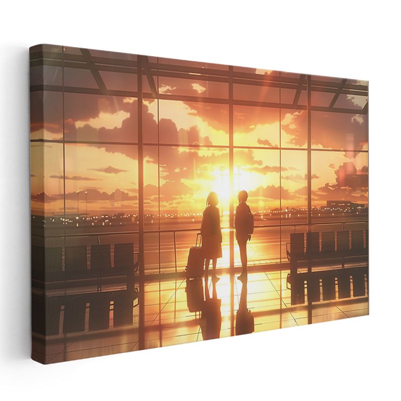 Havalimanı Buluşması - Altın Günbatımı Anime Kanvas Tablo