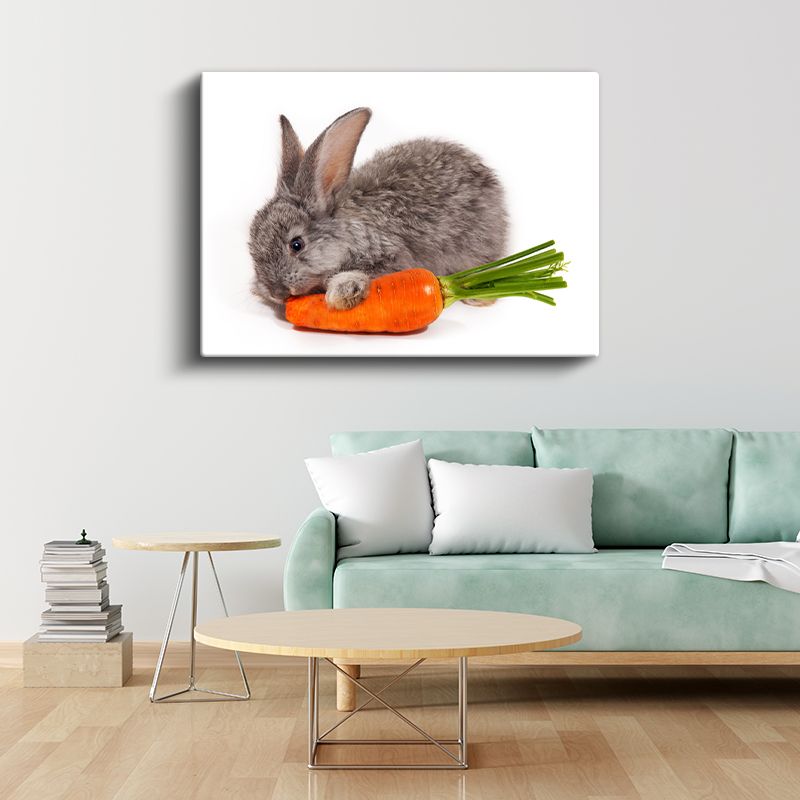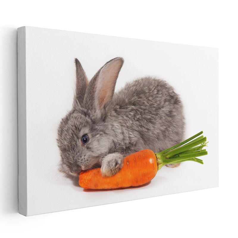 Havuçlu Tavşan - Sevimli Kemirgen Portresi Kanvas Tablo