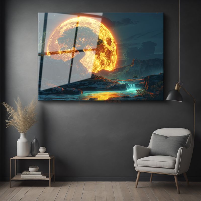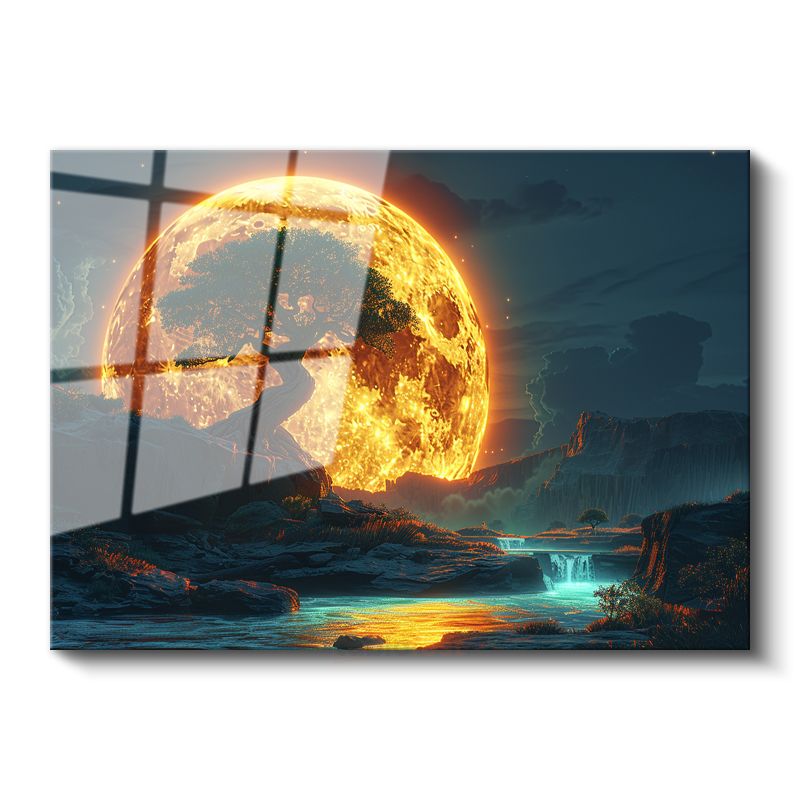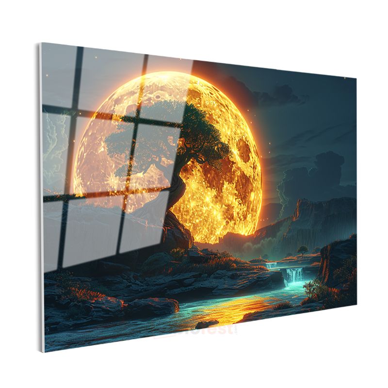 Hayat Ağacı - Mistik Dolunay Işığında Doğanın Uyanışı Cam Tablo