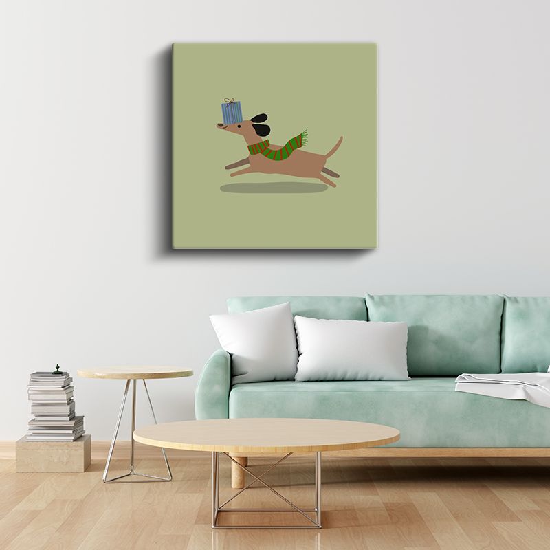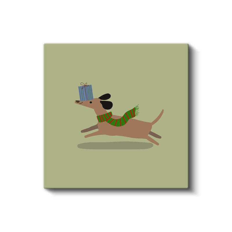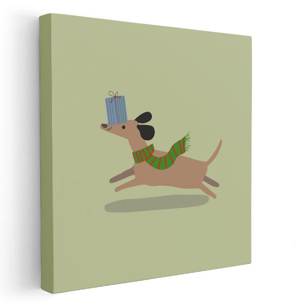 Hediyeli Köpek - Atkılı Sevimli Dost Kanvas Tablo