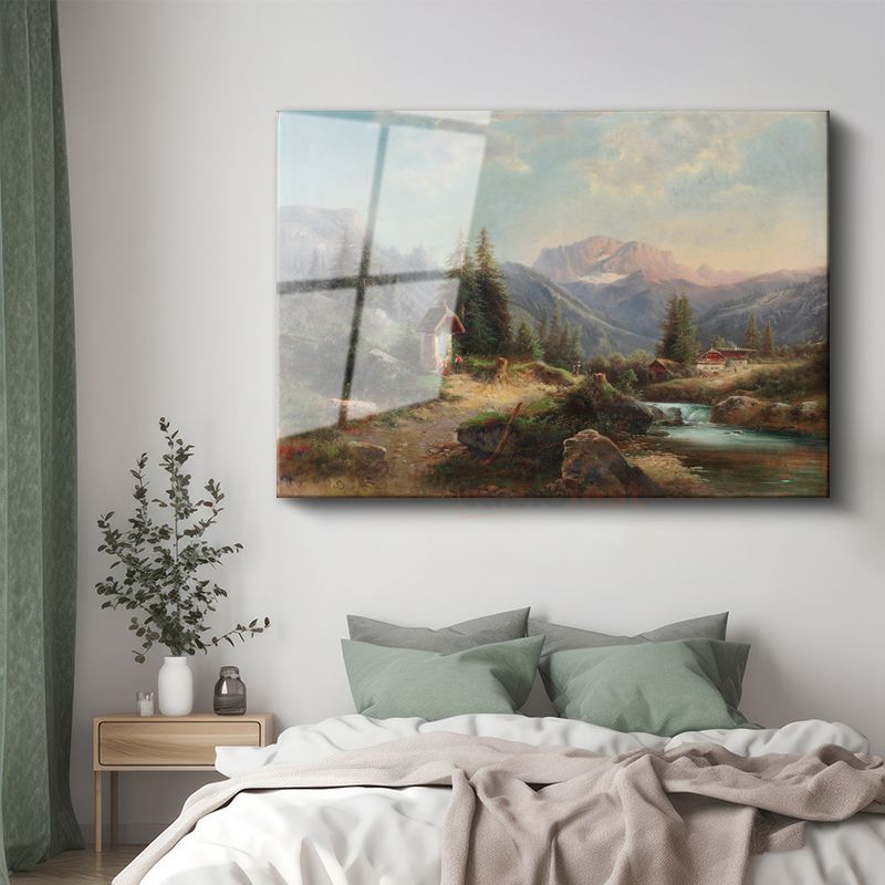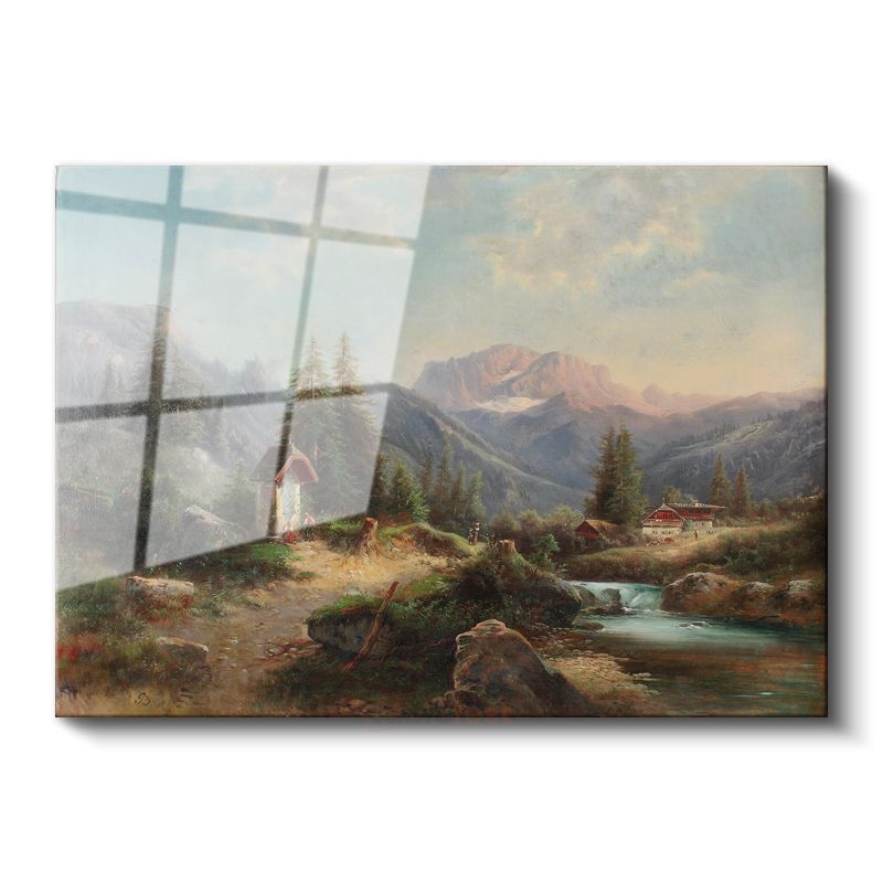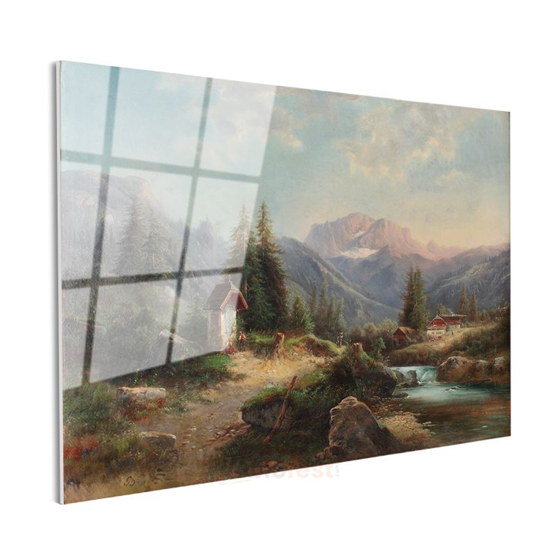 Heinrich Bürkel - Alp Dağları Manzarası Cam Tablo