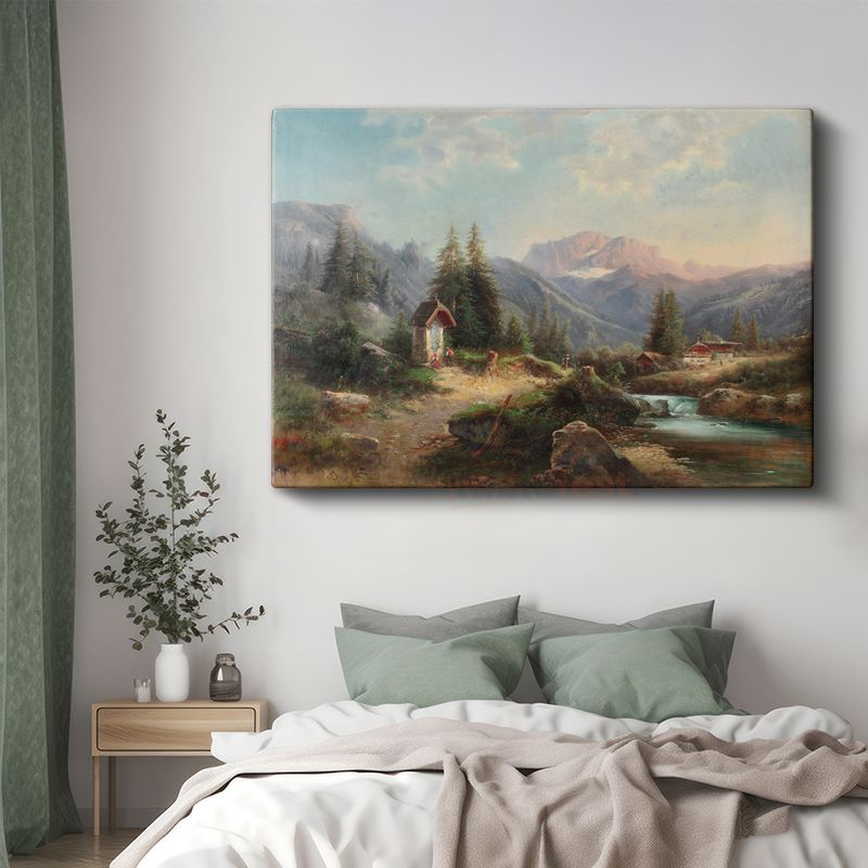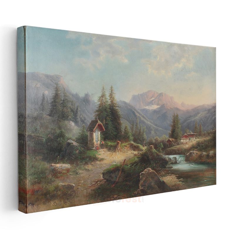 Heinrich Bürkel - Alp Dağları Manzarası Kanvas Tablo