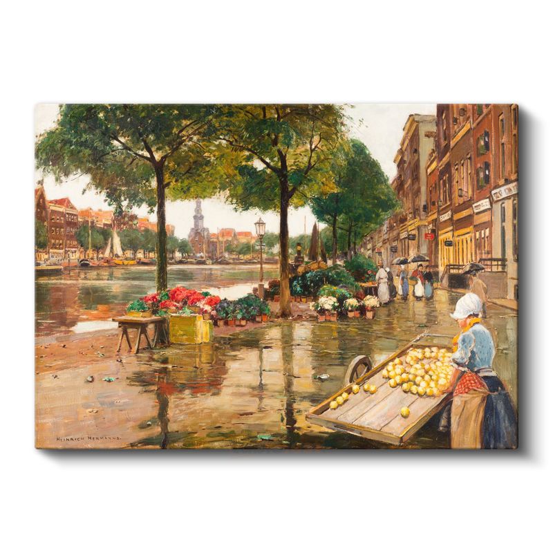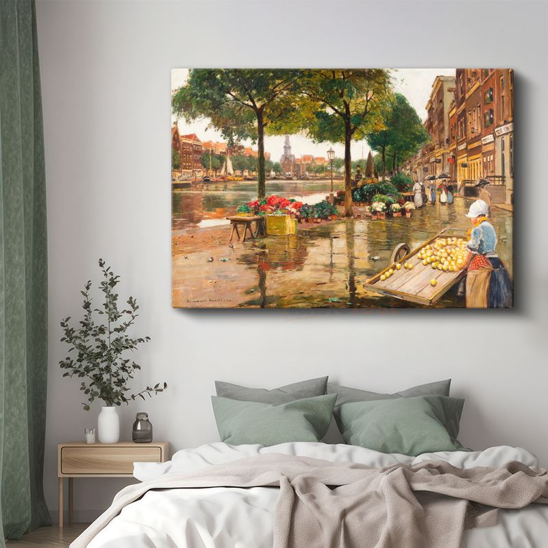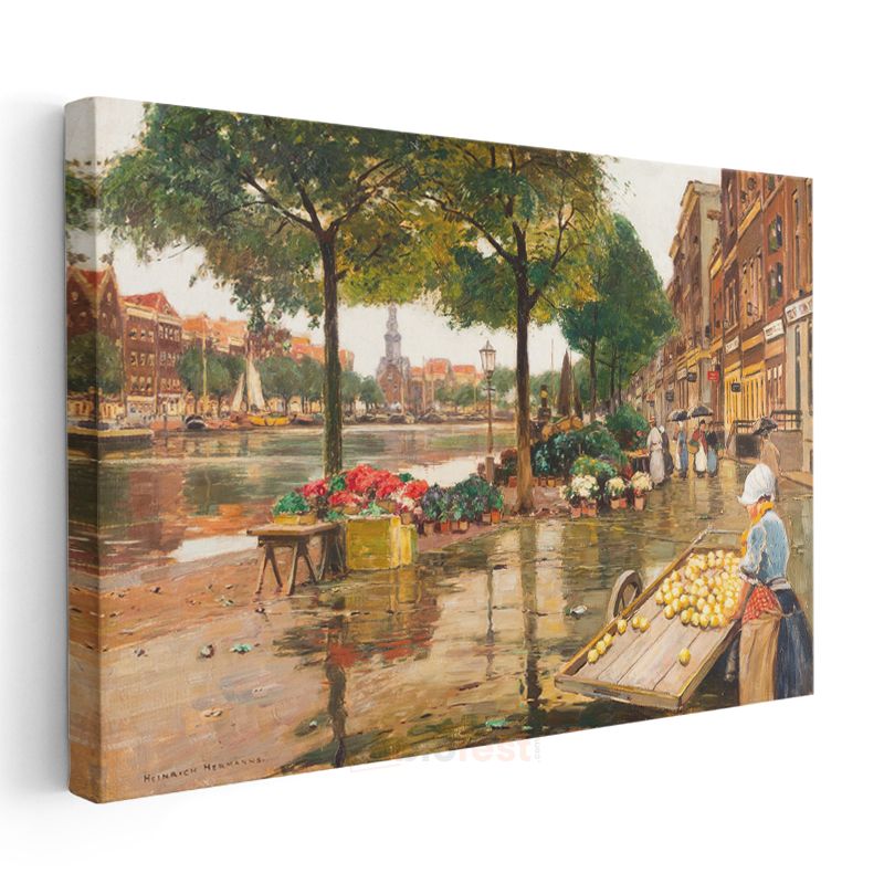 Heinrich Hermanns - Çiçek Pazarı Kanvas Tablo