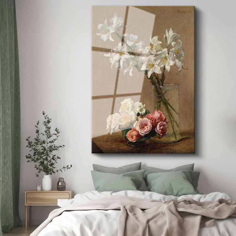 Henri Fantin-Latour - Zambak ve Güller Cam Tablo