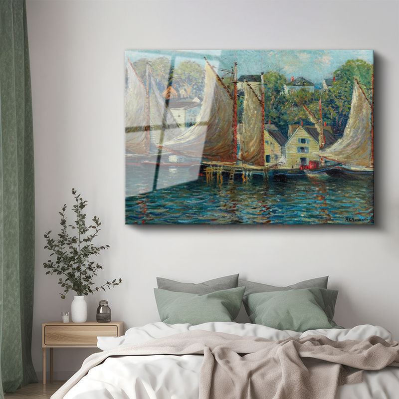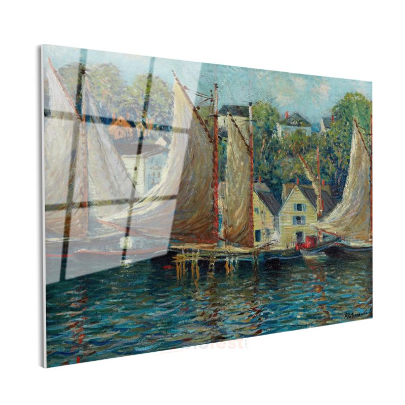 Henry Bacon - Yelkenliler ve Liman Manzarası Cam Tablo