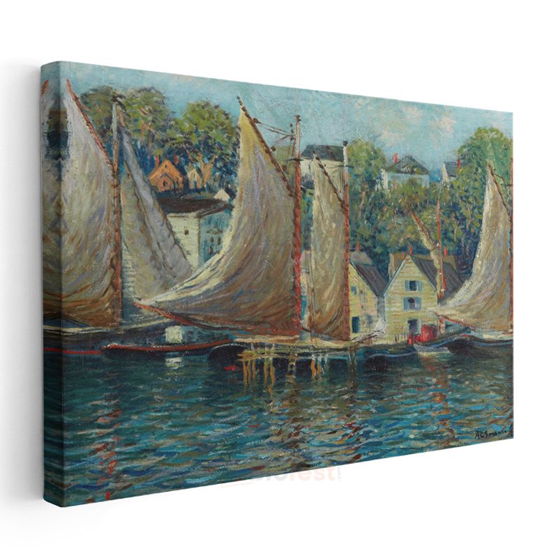 Henry Bacon - Yelkenliler ve Liman Manzarası Kanvas Tablo