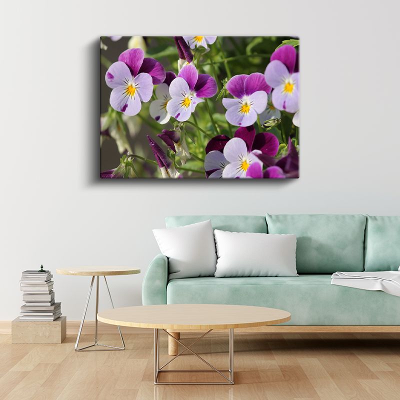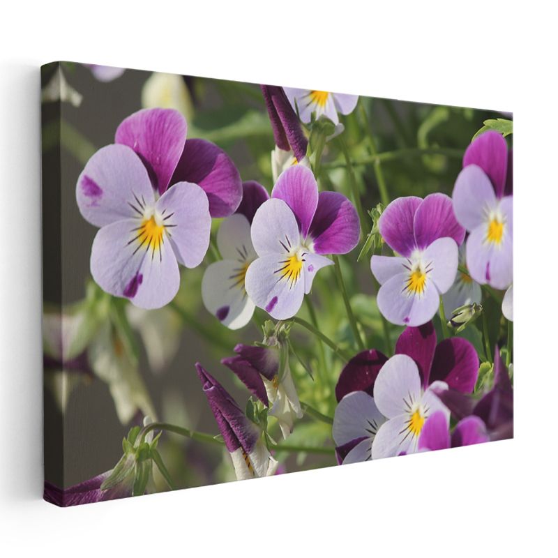 Hercai Menekşeler - Sarı Merkezli Renkli Çiçekler Kanvas Tablo