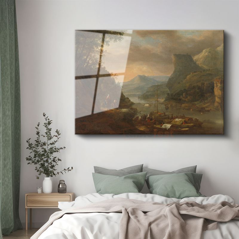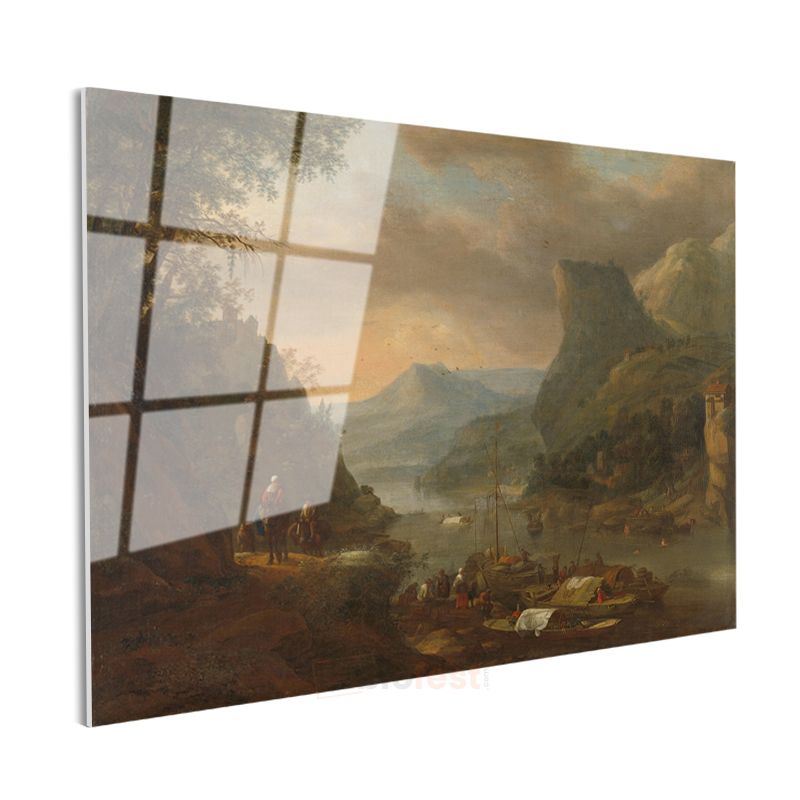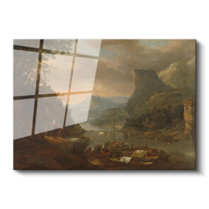 Herman van Swanevelt - Dağlık Nehir Manzarası Cam Tablo