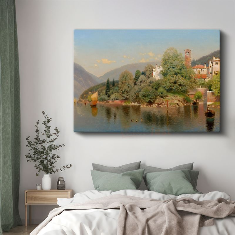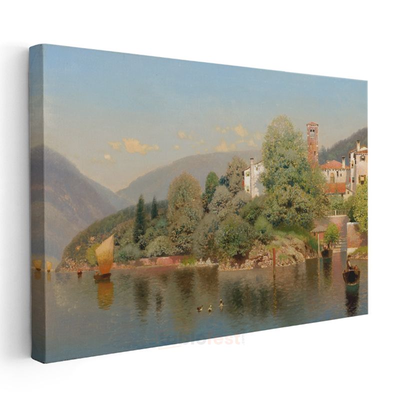 Hermann Ottomar Herzog - İtalyan Göl Manzarası Kanvas Tablo