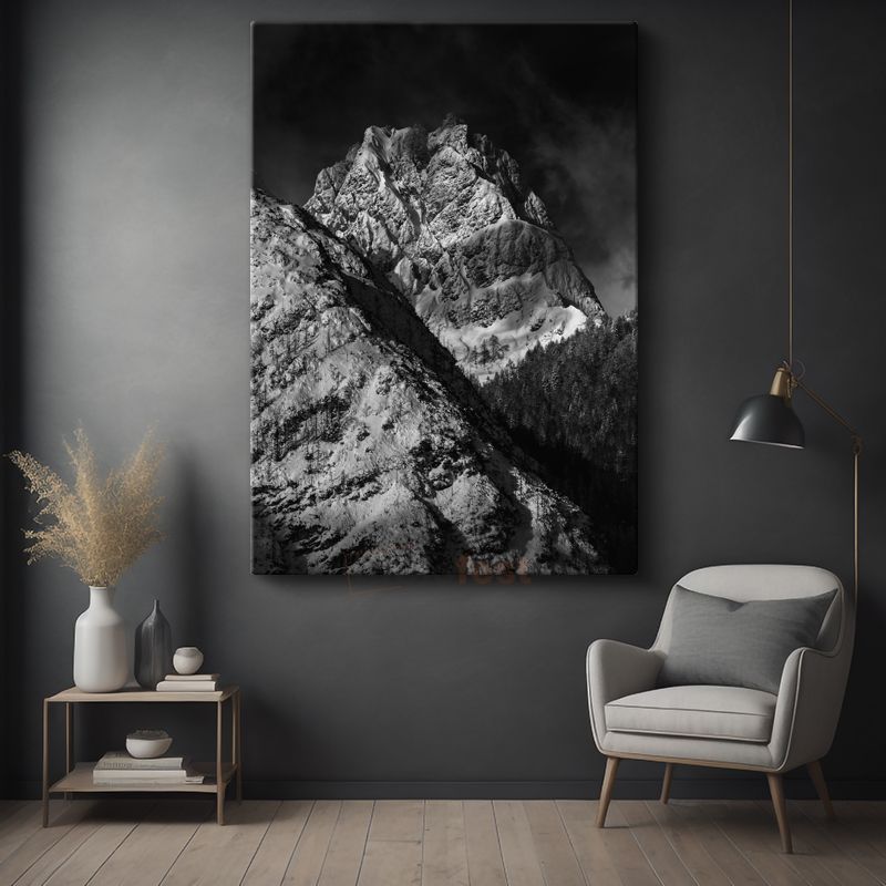 Heybetli Zirve - Siyah Beyaz Karlı Dağların İhtişamı Kanvas Tablo