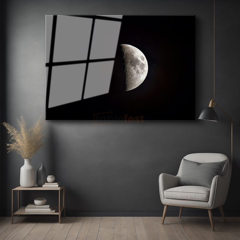 Hilal Ay - Gecenin Sessiz Bekçisinin Zarif Silüeti Cam Tablo