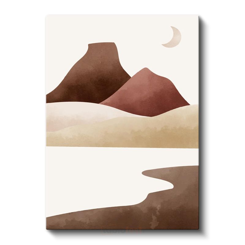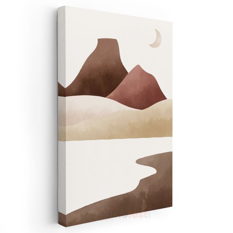 Hilal Işığı - Kahverengi Dağ Siluetleri Minimalist Kanvas Tablo