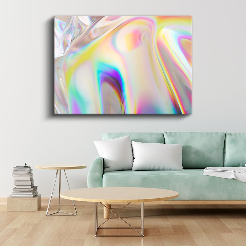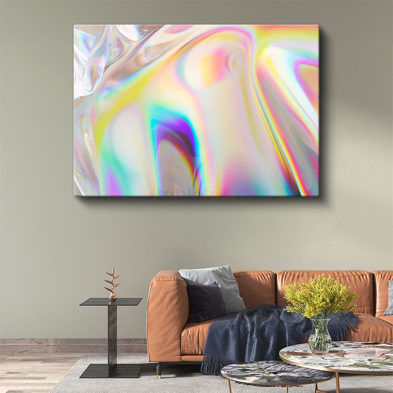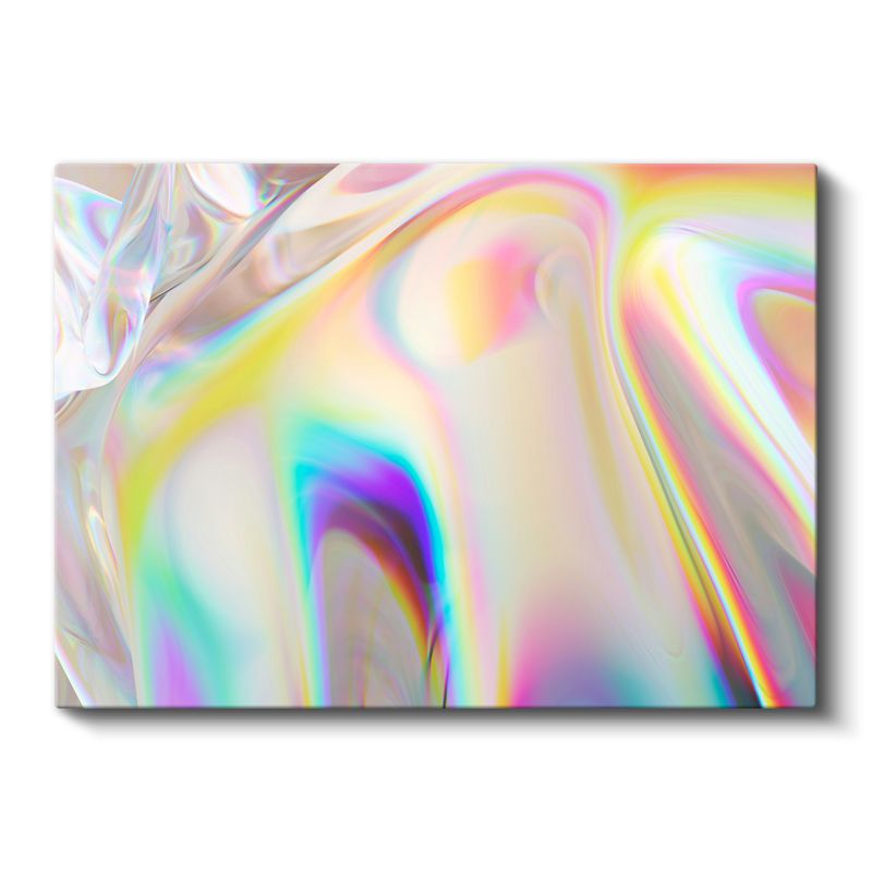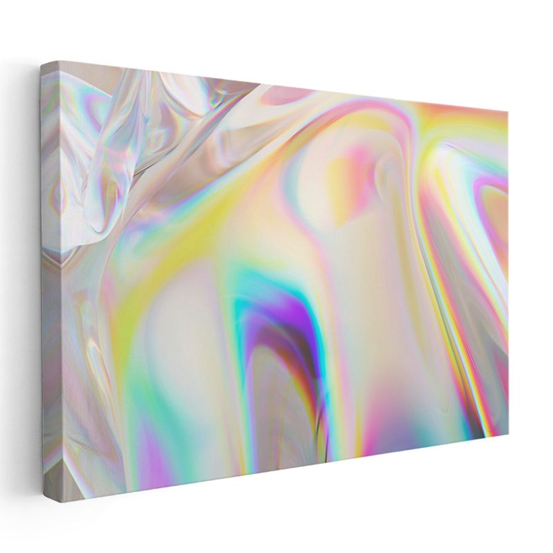 Holografik Akış - Gökkuşağı Renklerinde Parlak Soyut Formlar Kanvas Tablo