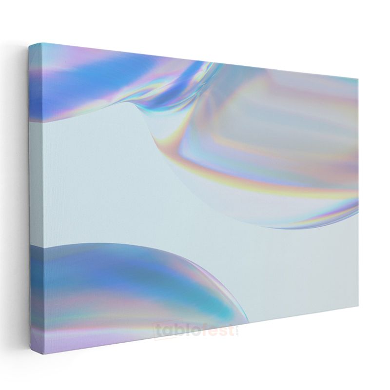 Holografik Dalgalar - Gökkuşağı Renkli Minimalist Akışkan Formlar Kanvas Tablo