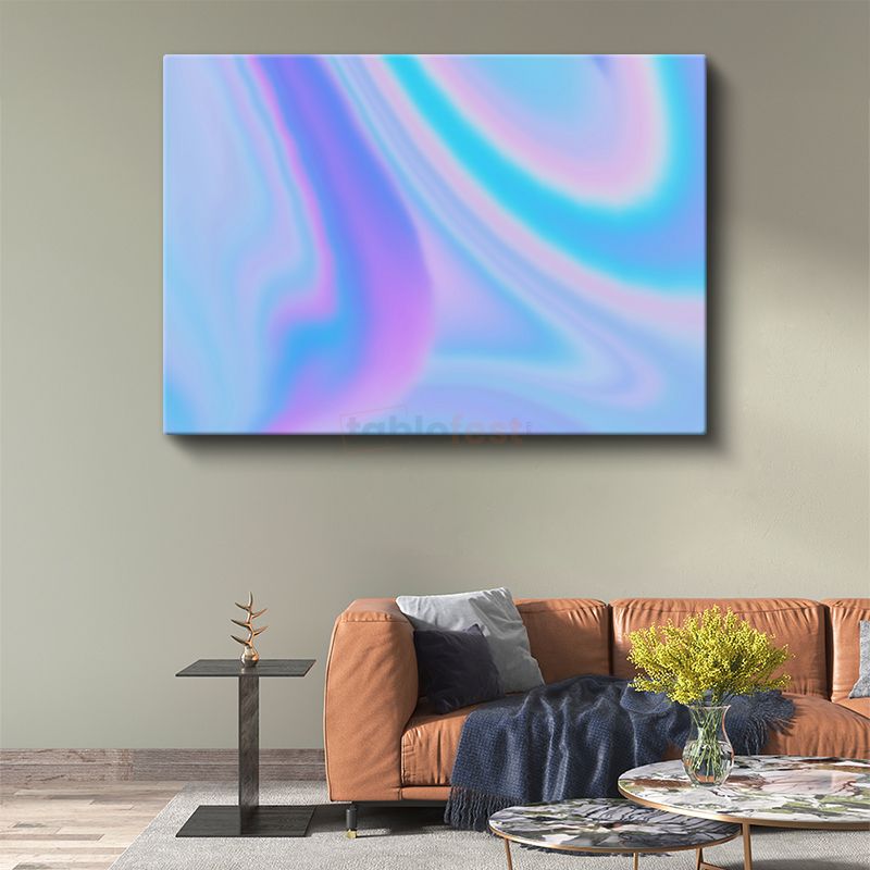 Holografik Dalgalar - Mavi Mor Geçişli Soyut Kanvas Tablo