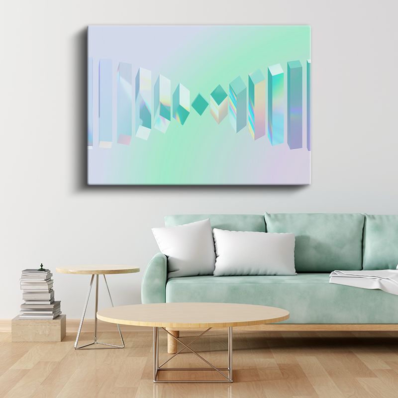 Holografik Küpler - Geometrik Mimari Soyut Kanvas Tablo