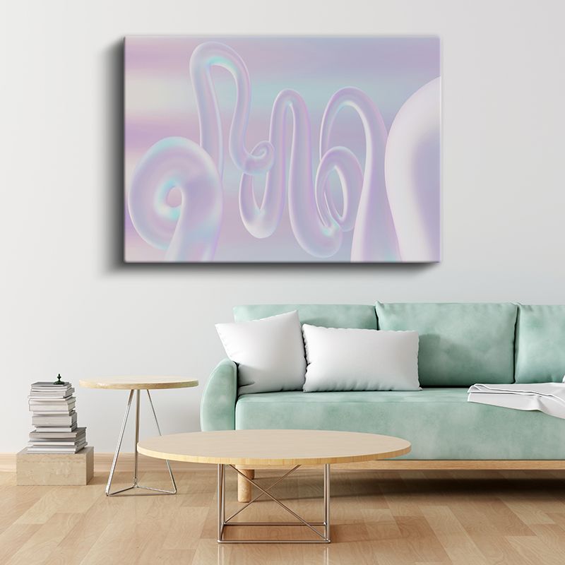 Holografik Spiraller - Pastel Mor ve Turkuaz Soyut Formlar Kanvas Tablo