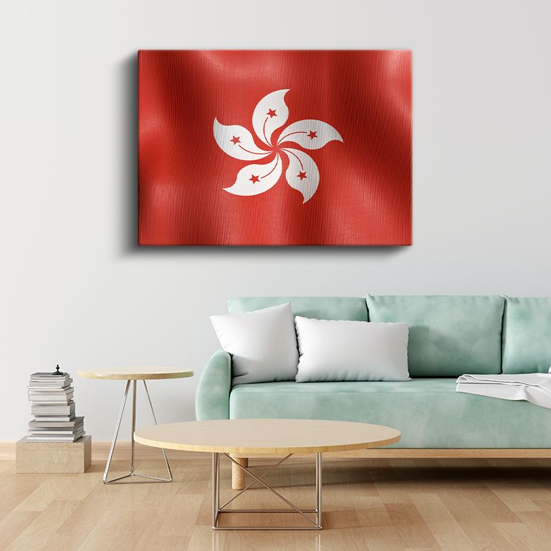 Hong Kong Bayrağı - Dalgalı Görünüm Kanvas Tablo