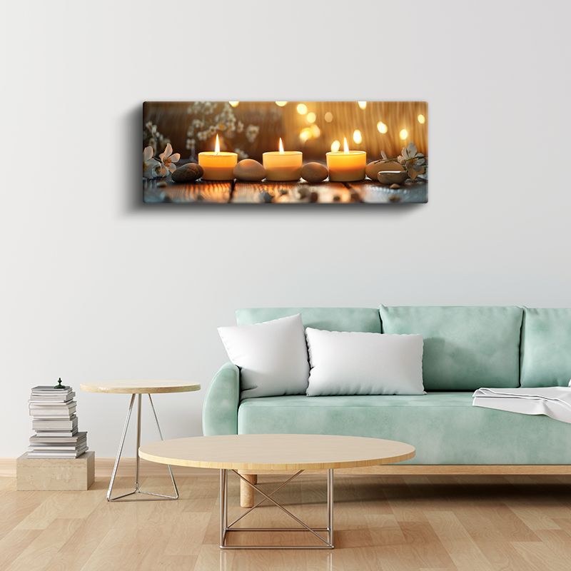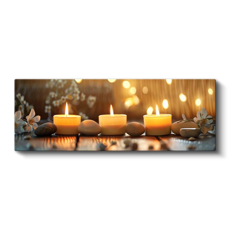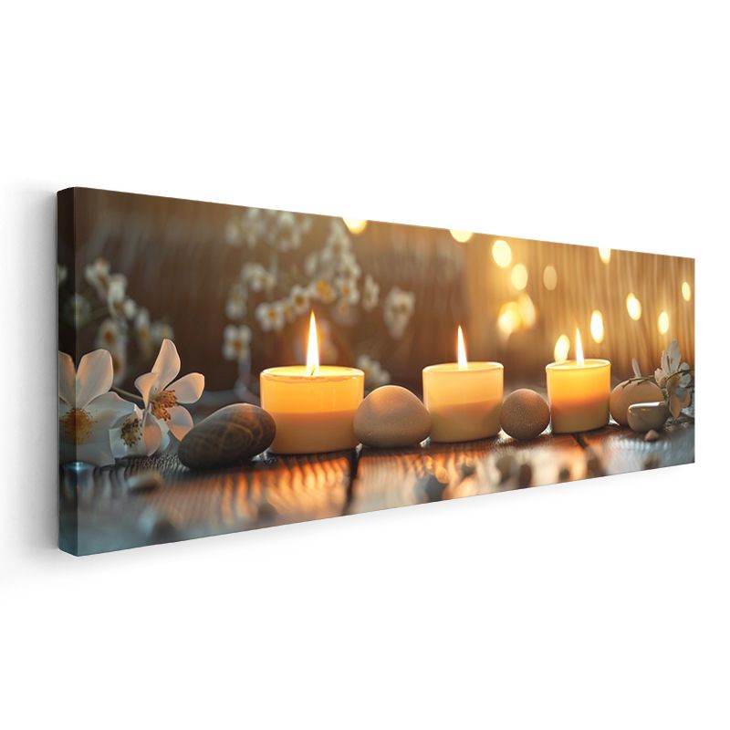 Huzur Köşesi - Mumlar ve Çakıl Taşlarıyla Dekoratif Düzenleme Kanvas Tablo