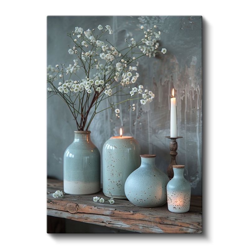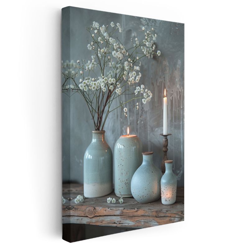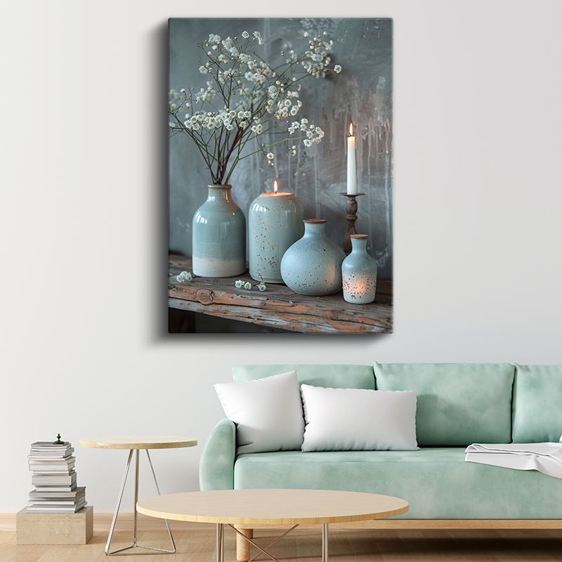 Huzur Köşesi - Turkuaz Seramik Vazolar ve Mumlar Kanvas Tablo