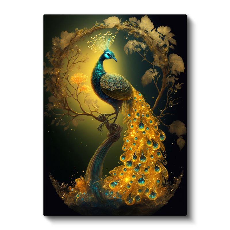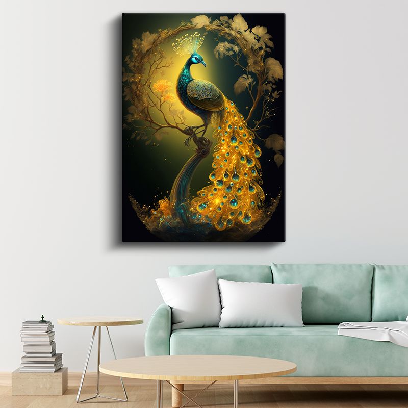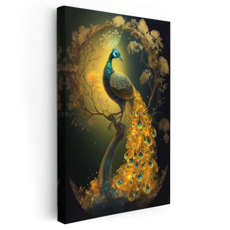 İhtişamlı Tavus Kuşu - Altın Kuyruklu Güzellik Kanvas Tablo