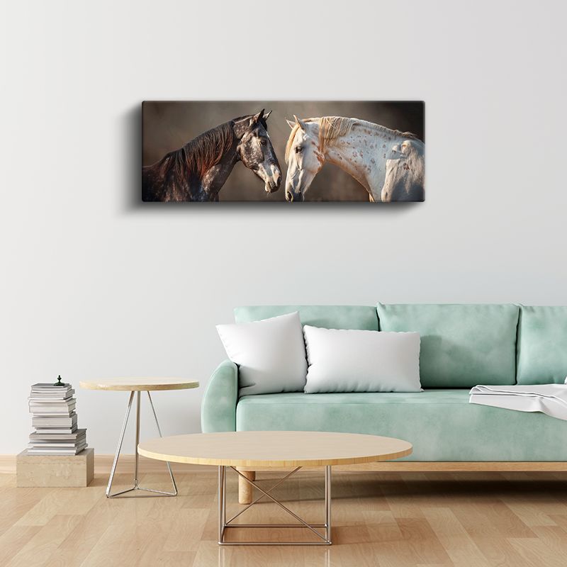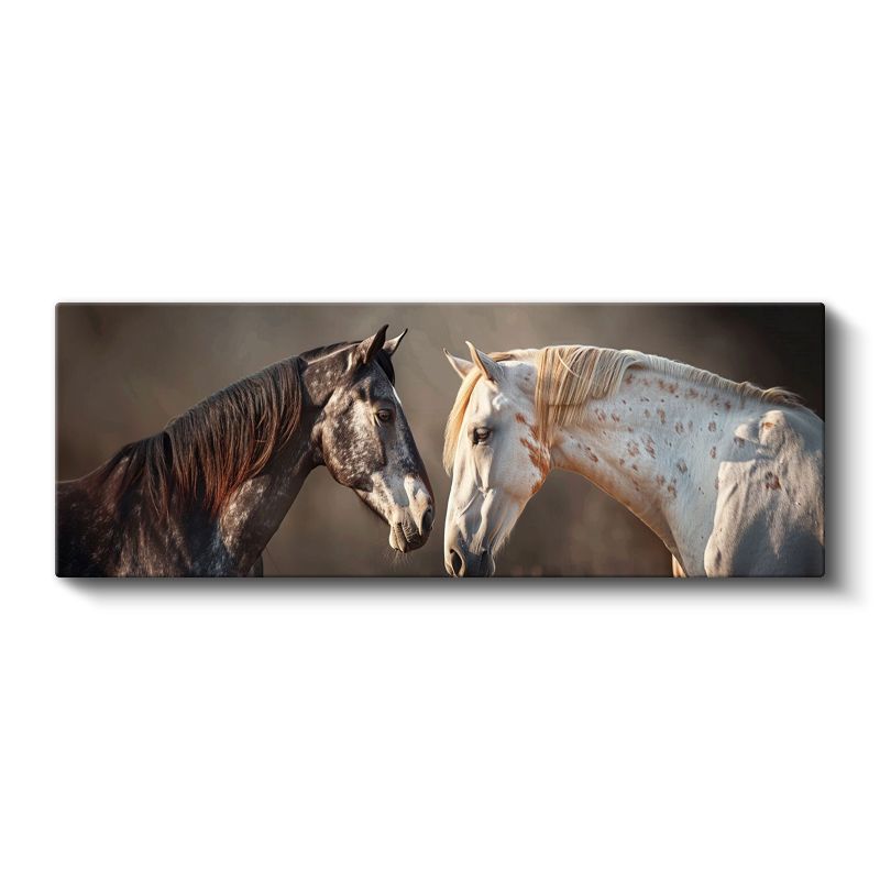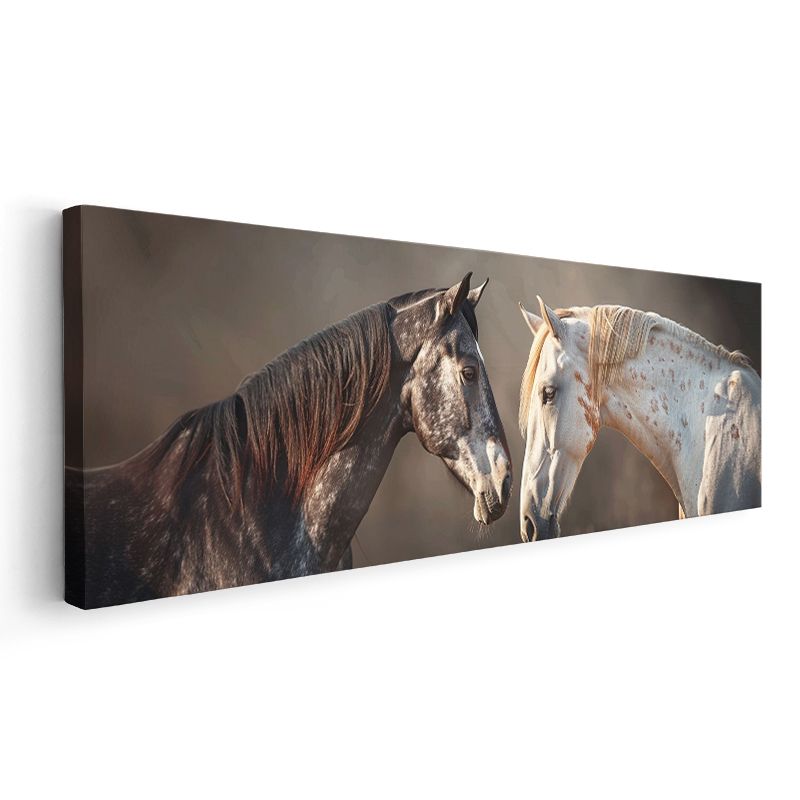 İkili At Portresi - Karşılıklı Duran Benekli Atlar Kanvas Tablo