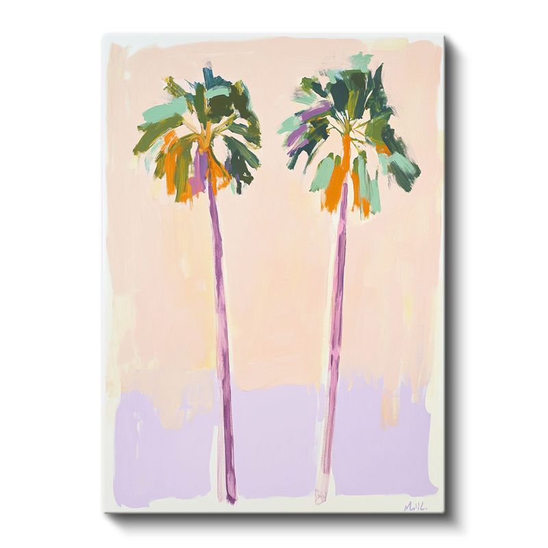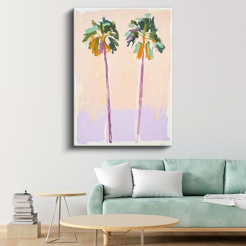 İkiz Palmiyeler - Pastel Fırça Darbeleri Kanvas Tablo