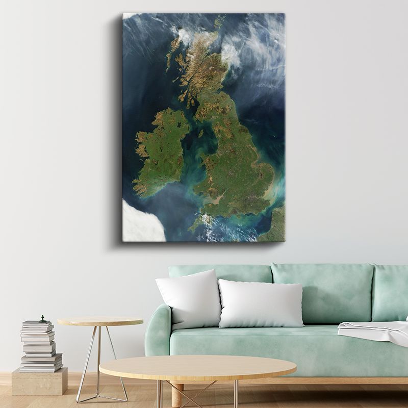 İngiltere & İrlanda - Fiziki Haritası Kanvas Tablo