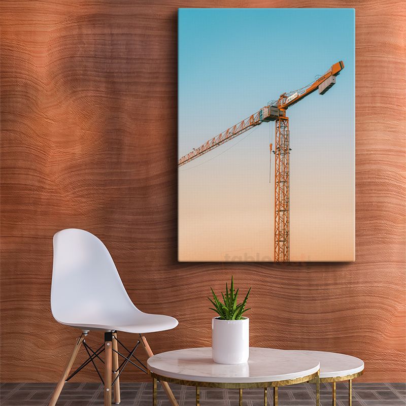 İnşaat Mühendisi - Gün Batımında Vinç Operasyonu Kanvas Tablo